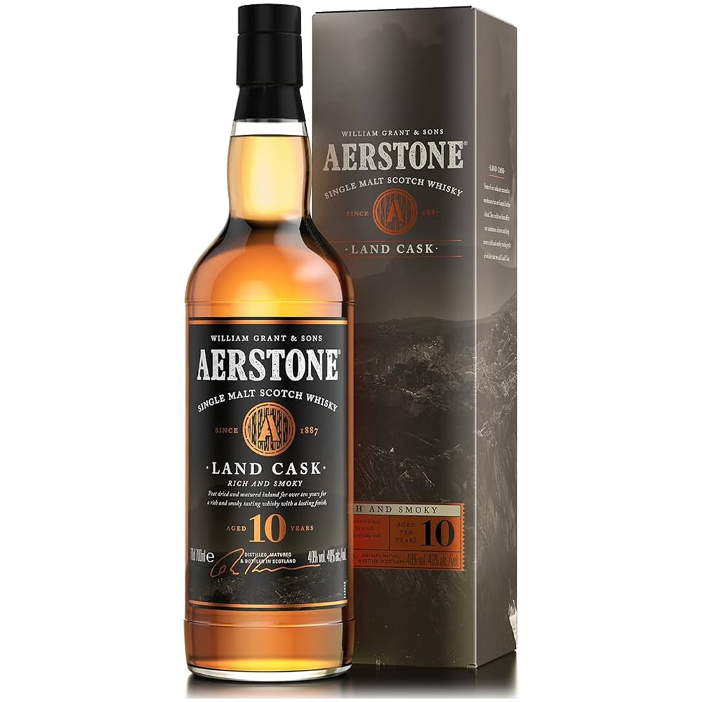 Un whisky Single Malt 10 ans d’âge, Assemblé par Brian Kinsman, Maitre de chai de GlenfiddichLe nom Aerstone désigne « l’air » en langage gaélique écossais. Il fait référence à l’air des terres qui influe sur le vieillissement de Land Cask.Soigneusement vieilli dans les terres écossaises du Lowlands, ce Single Malt révèle toute la richesse et la tourbe des hauts plateaux écossais. Certains fûts de whisky qui composent Land Cask vieillissent à l’intérieur des terres écossaises. Ces conditions climatiques particulières influent sur leur maturation et permettent de créer un whisky riche et tourbé que nous appelons Land Cask.